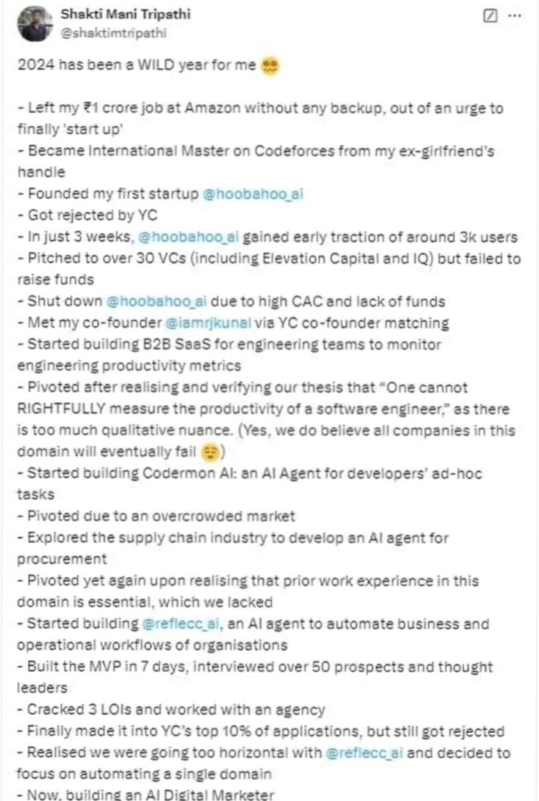 Hope 2025 Doesn't end my "ENTREPRENEURIAL JOURNEY " about bengaluru based tech guy Ai startup failure