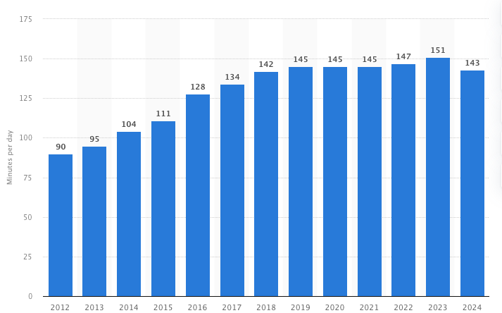Time spent on Social Media has reduced in 2024 after multiple decades of growth.