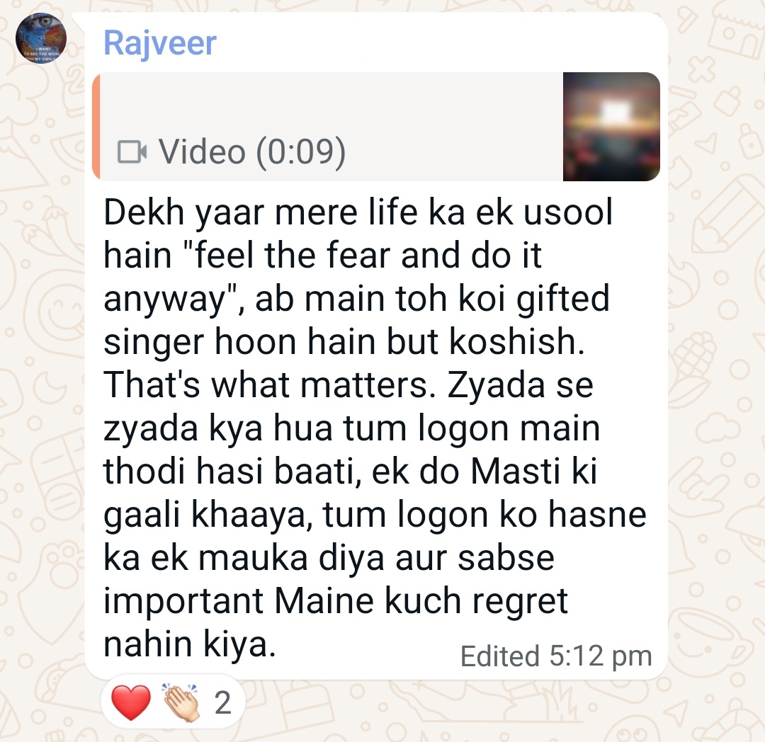 Totally agree to him. Most of the time we don't do anything just because of "what others will think of us". And this actually doens't make any sense. If you did something, People will forget about that in few days but if you didn't, you will loose an