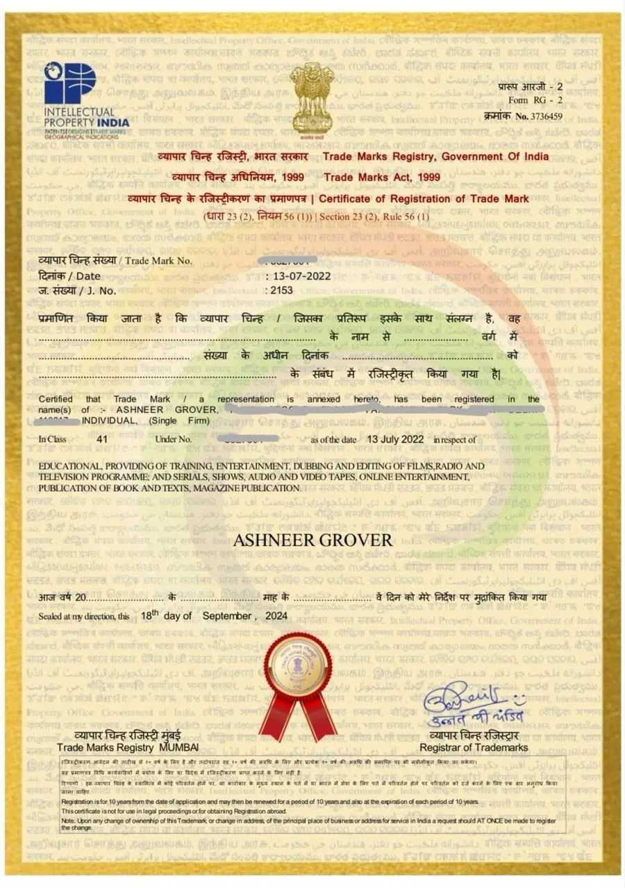 Ashneer Grover has trademarked his name. This could become a new trend in the future.