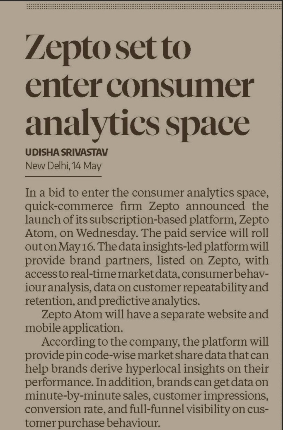 "Zepto Goes from Groceries to Genius: Unleashes โAtomโ to Decode Your Shopping Soul!" Zepto entering the consumer analytics game with Zepto Atom? Now thatโs a plot twist in the quick-commerce saga! What was once just about zippy grocery deliveries i