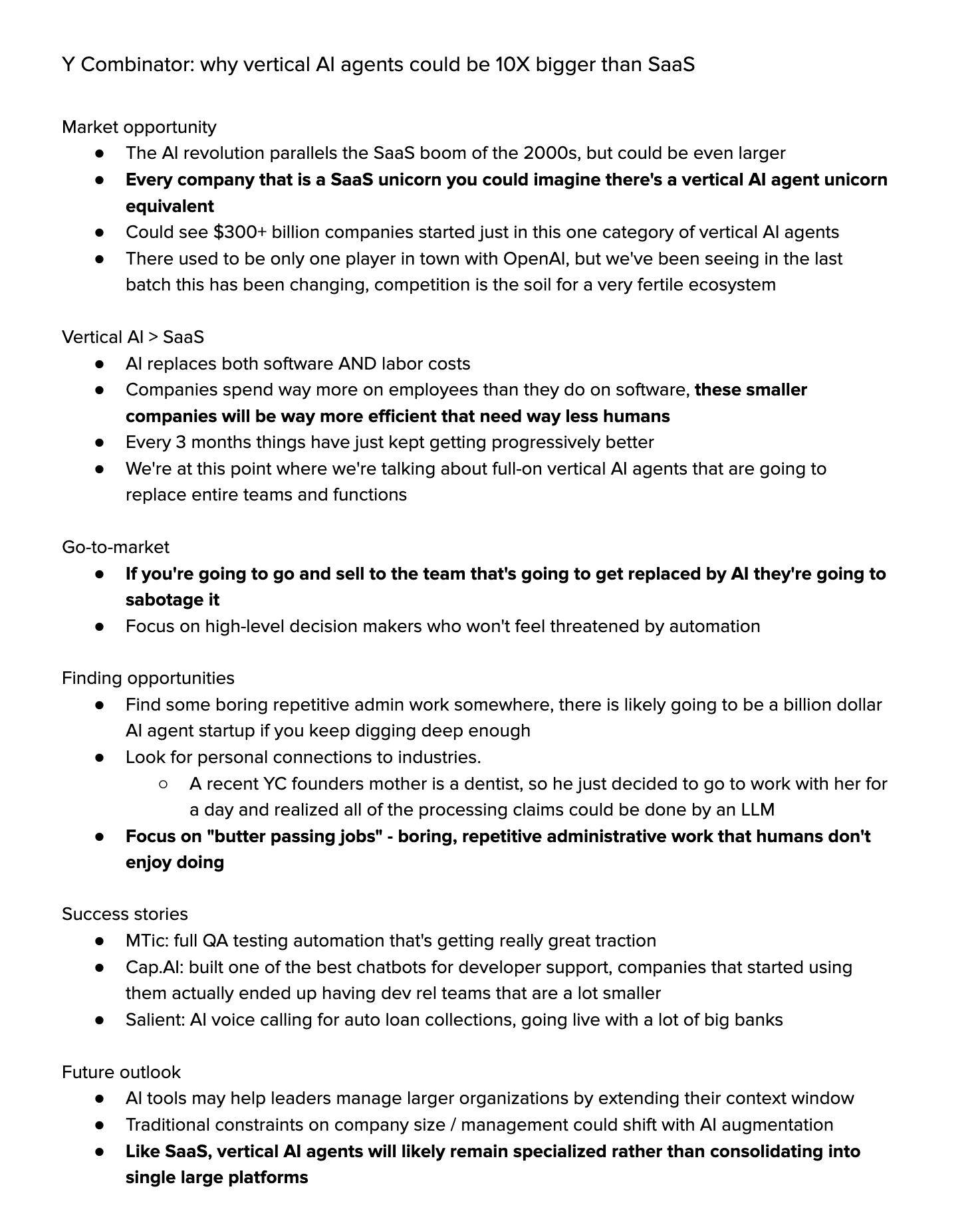 YC on why vertical AI agents could be 10X bigger than SaaS: creds: benln/x