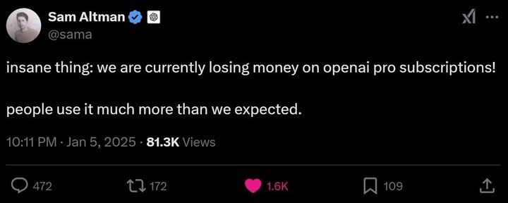 openai is losing money on pro plan๐