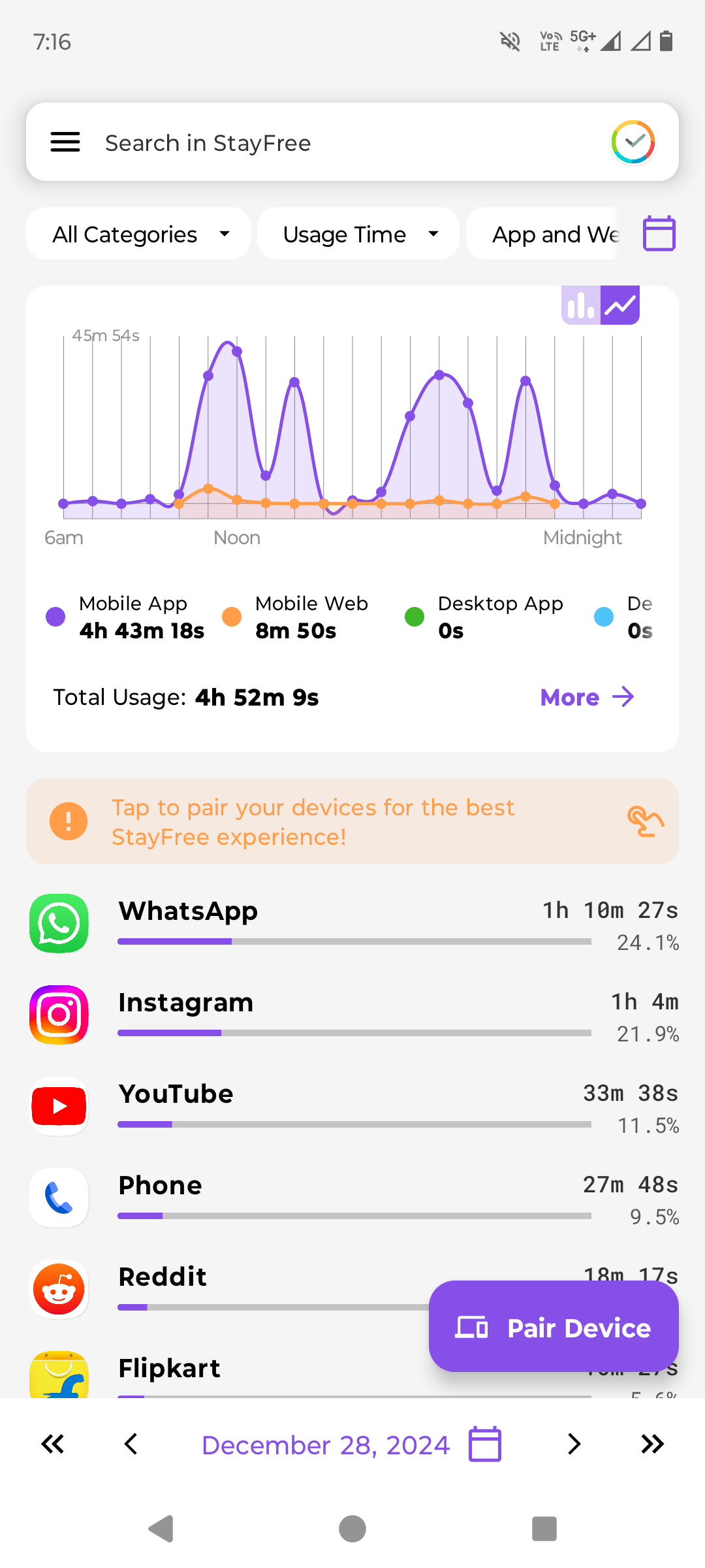 I am so happy that this year I could make a meaningful change. Here is before vs after an average Sunday in 2024 vs in 2025. All I did was remove all the Social media apps. The problem with me is I should have them in my phone and still have the co