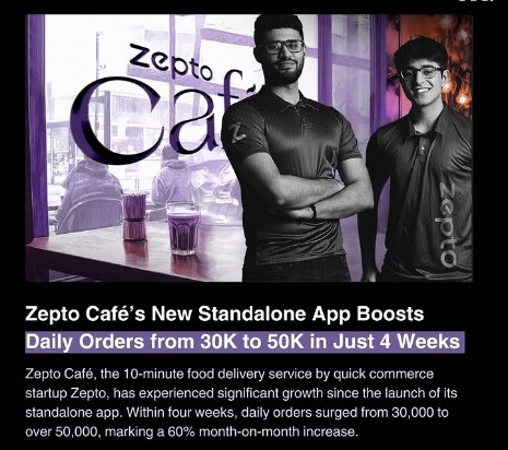 It's super fascinating that zepto has built so many businesses internally at scale 1. Relish by zepto 2. Zepto Cafe 3. Zepto vegetables and fruits vertical 4. Zepto Ad tech business This is the pure outcome of getting great people to work toge