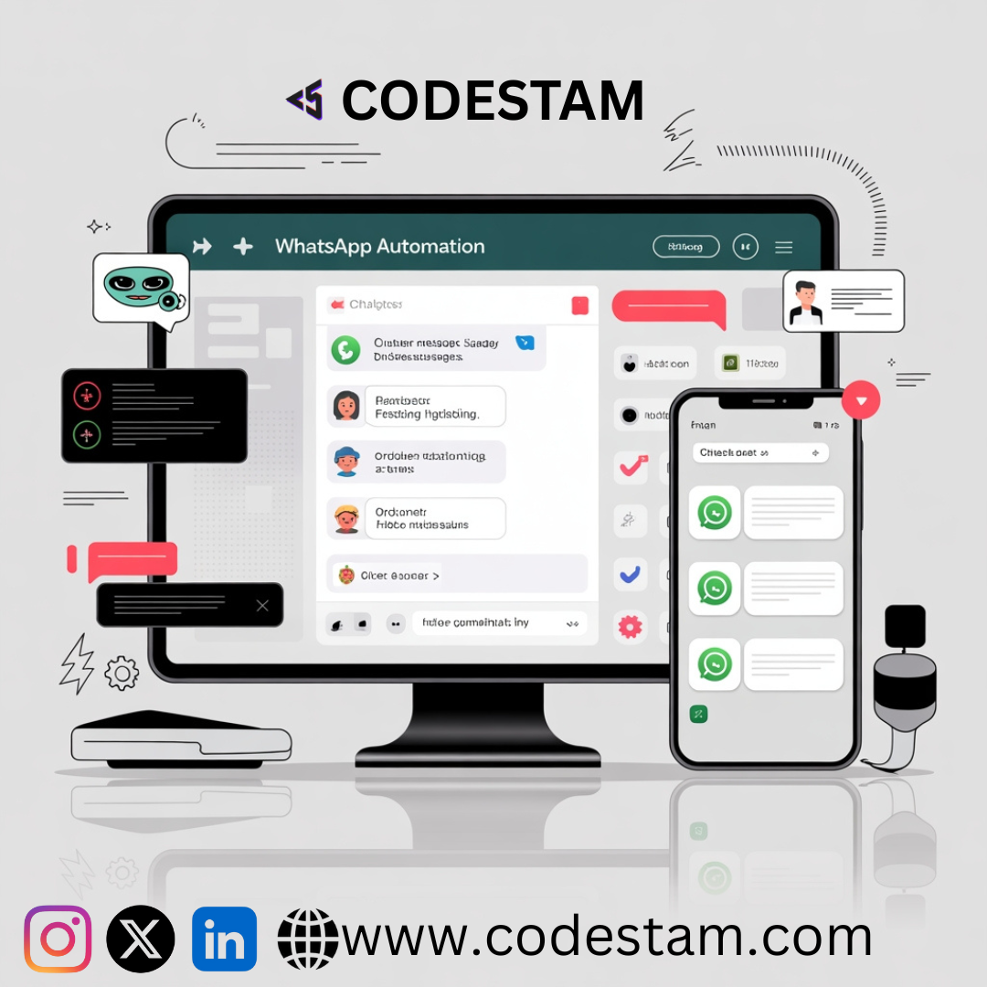 Streamline your business with WhatsApp Automation by Codestam! From instant replies to automated workflows, we help you connect smarter, save time, and boost productivity. Enhance customer experience, manage conversations with ease, and grow your bu