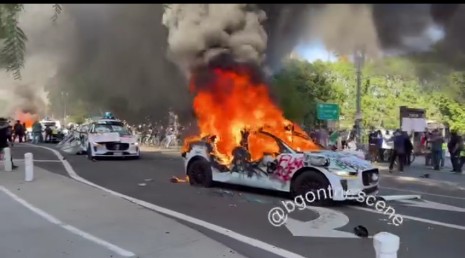 Waymo self-driving cars set ablaze in downtown LA during mass protests ๐จ๐ฅ As immigration raids sparked widespread unrest, protesters turned their anger toward Waymoโs autonomous vehicles: โซ๏ธ Tires slashed, windows shattered, anti-ICE messages sp