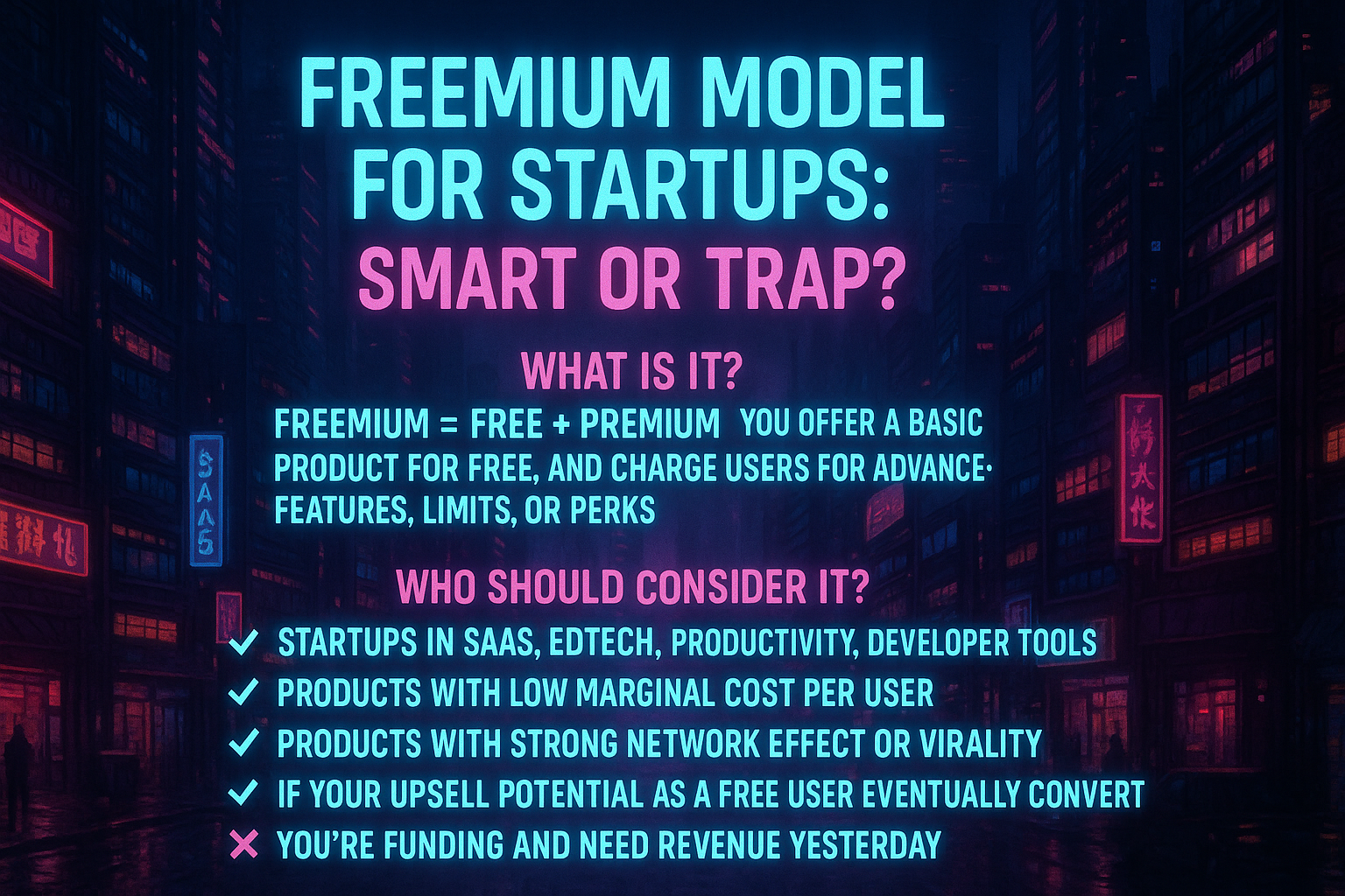 Freemium Model for Startups: Smart or Trap? What is it? Freemium = Free + Premium. You offer a basic product for free, and charge users for advanced features, limits, or perks. Who should consider it? ✅ Startups in SaaS, Edtech, Productivity, Devel