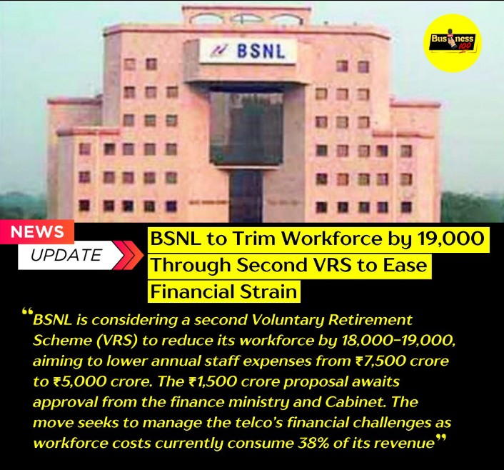 BSNL is planning a second Voluntary Retirement Scheme (VRS) to cut its workforce by 18,000-19,000 and ease financial pressures. The proposal, seeking ₹1,500 crore for implementation, has been submitted to the Department of Telecommunications (DoT)