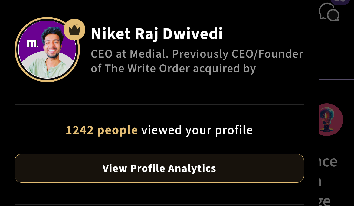 Gained 500 followers and 1.2k profile visits 🏆 another milestone achieved and I am motivated and Many more valuable content and insights on its way. Medial is a platform which gave me a lot to learn and teach people within my knowledge. Thanks a