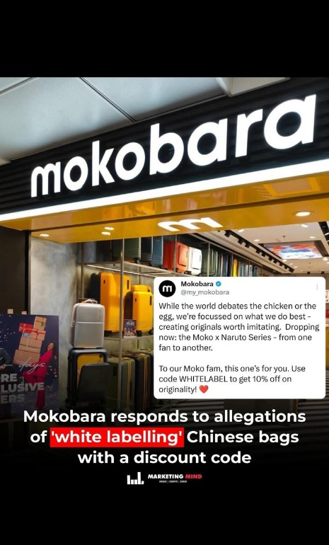 The company’s response addresses ongoing speculation about whether Mokobara is ‘white labelling’ Chinese bags and selling them at a markup, or if replicas are being sold on other e-commerce platforms.