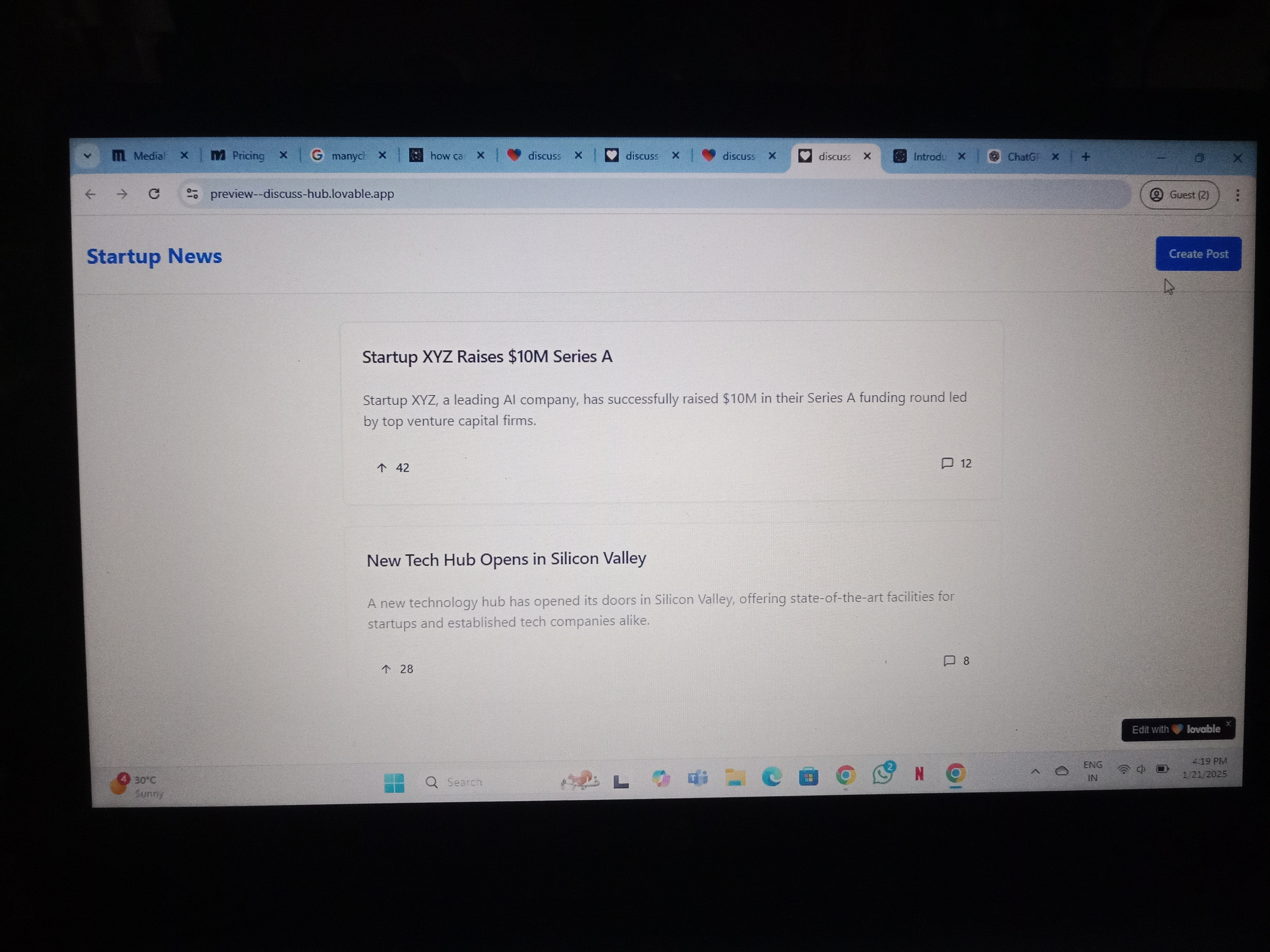 I tried lovable.dev and within few minutes I've built a basic platform that lets users to make text posts have a look at it (in attached images below) I'll try and build complex applications using this tool
