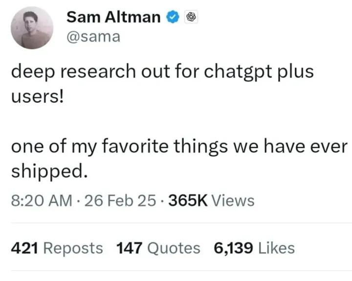 OpenAI just made "Deep Research" available to Plus users. Why? Because Perplexity, Grok, and others already offer similar Feature for free. This is why competition matters...better features, lower prices. If OpenAI had no competition, you'd be pay
