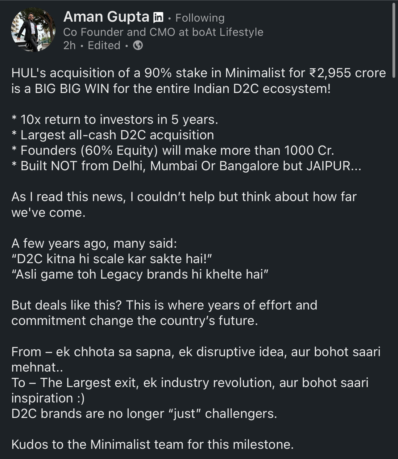 Aman Gupta on why minimalist acquisition is a huge thing for D2C