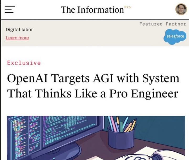 🆕: openai is working on an ai coding agent designed to replicate level 6 engineer, which they see as a big step toward agi/asi.