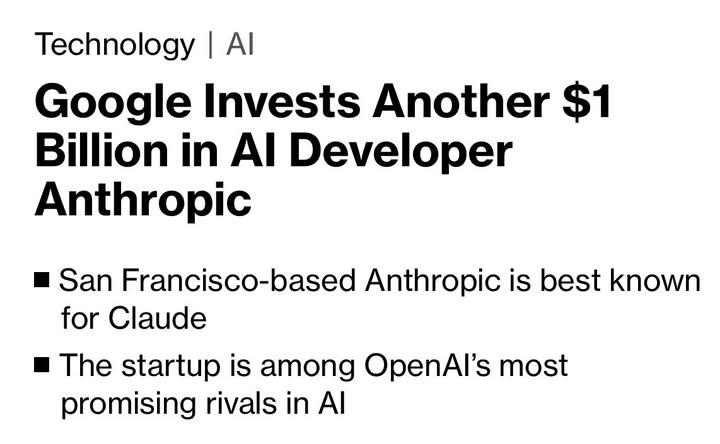GOOGLE INVESTS ANOTHER $1 BILLION IN ANTHROPIC