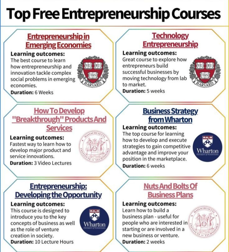 top free entrepreneurship courses online ( I know taking online courses won't make entrepreneurs but , the more you learn , the more you know , the better you understand it & play the game well )