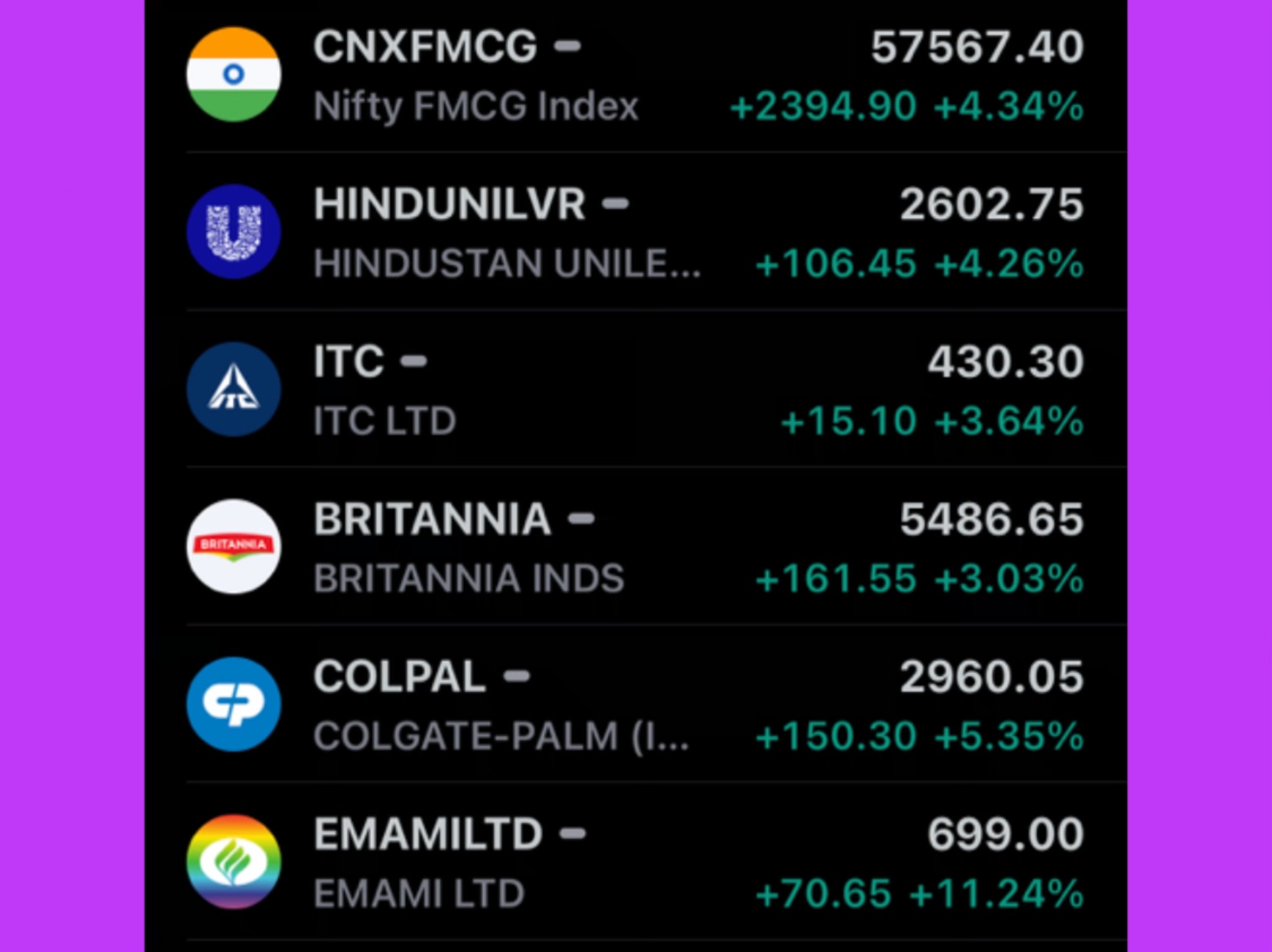 The Reason for strong uptrend seen in FMCG stocks in yesterday’s election uncertainty and today’s session is because People consider that FMCG is only SAFEST sector to park their funds in those uncertainty because Consumers put less thought into pu