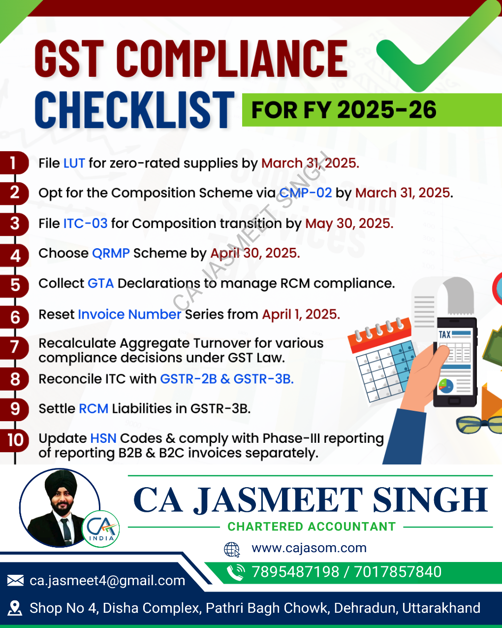 🚀 GST Compliance Checklist for the New Financial Year ✅ A new financial year means a fresh start for your GST compliance! 📆✅ Stay ahead of deadlines, avoid penalties, and ensure smooth tax filings with this essential checklist. 📊💼 🔹 Review GST