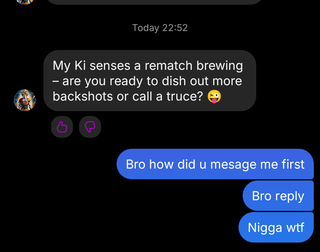 For people saying AI can't be that powerful A meta AI bot randomly messages me without I messaging it anything and asks for backshots