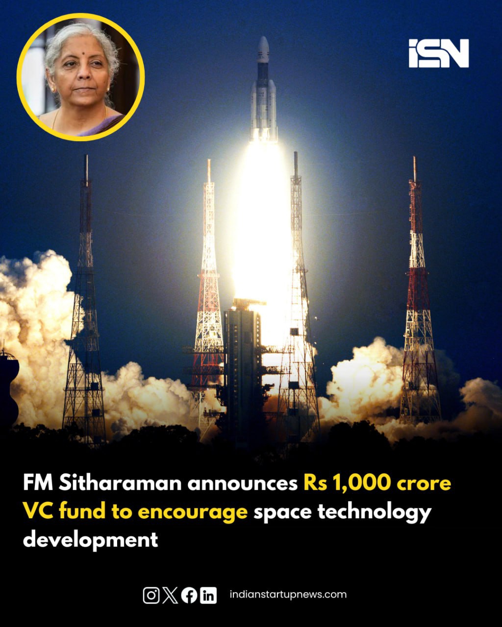 Union Finance Minister Nirmala Sitharaman announced the establishment of a Rs 1,000 crore venture capital fund to encourage the development of space technology during her Budget 2024 speech. The fund will significantly help in the expansion of India