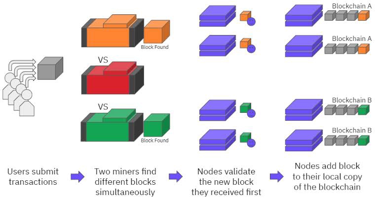 #Cryptoqueries WHAT IF TWO BLOCKS ARE MINED AT THE SAME TIME ? Sometimes, two miners broadcast a valid block at the same time and the network ends up with two competing blocks. The miners then start mining the next block based on the block they r