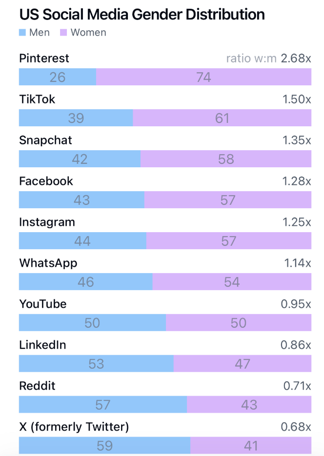 Social Media Platforms by Gender Ratio