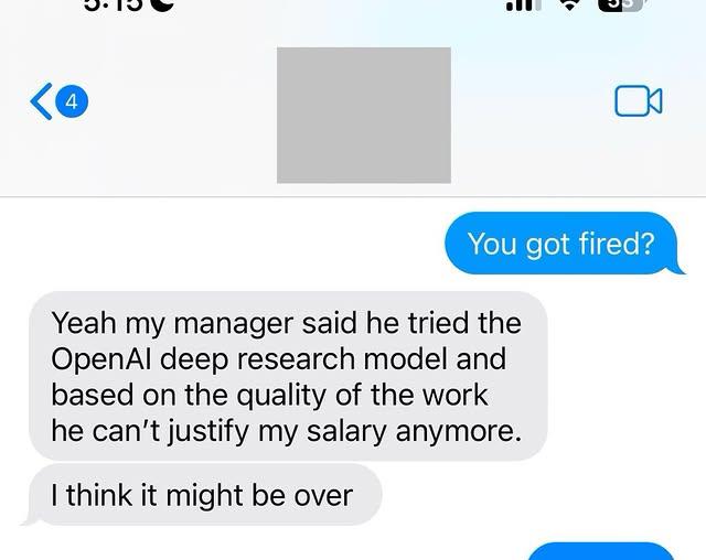 openai deep research just took his job 😭 saw this on x with 140k views, can’t verify the source though, could be fake 🤔