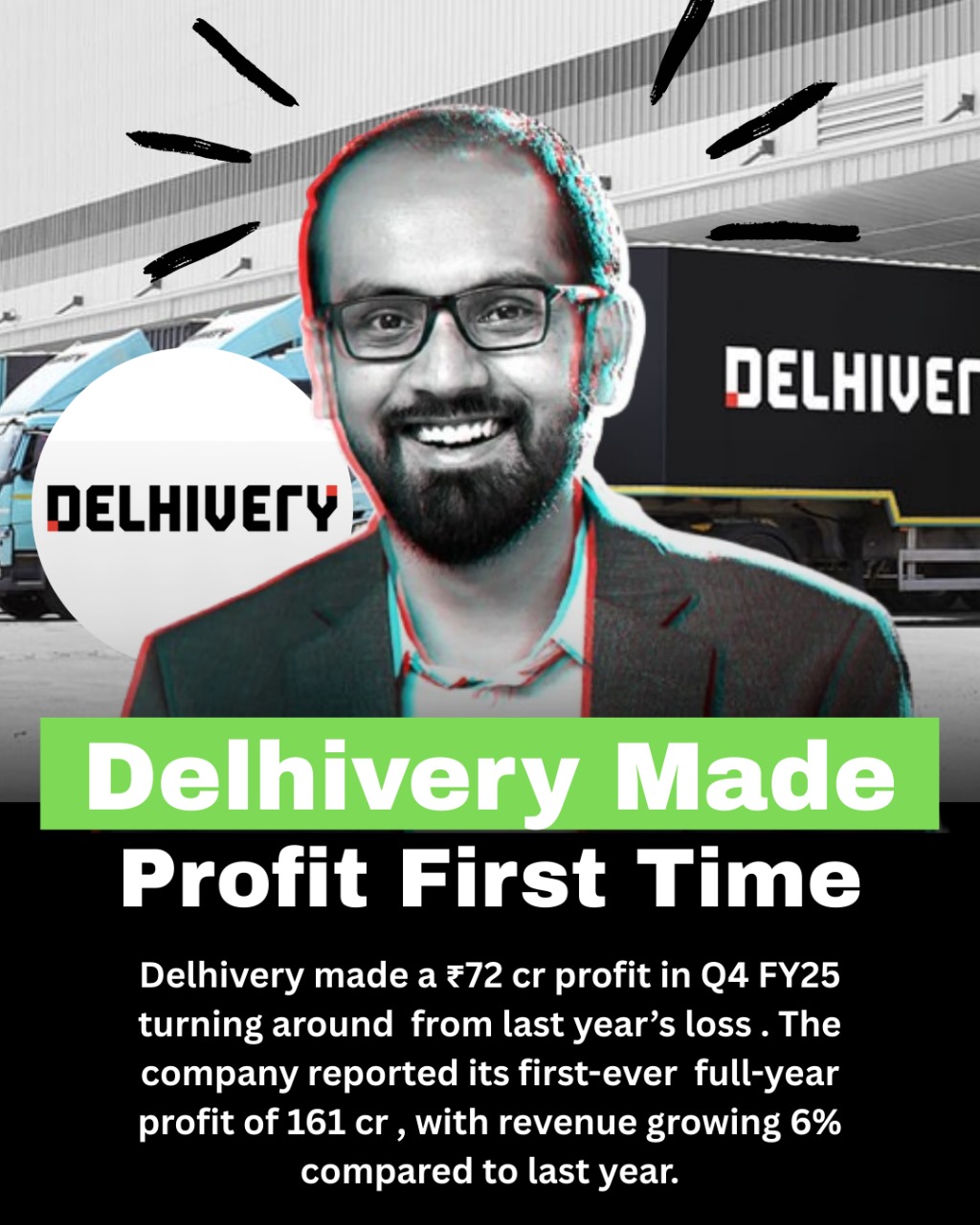 For years, Delhivery, one of India's biggest logistics startups, was running at a loss. But FY25 changed the game. In the fourth quarter alone, Delhivery posted a profit of ₹72.6 crore - a big turnaround compared to the 68.5 crore loss in the same qu