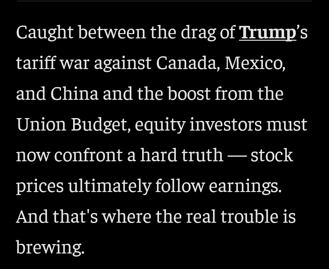 The Indian market has been declining since September 2024. Even the best investors or traders have seen their net worth decrease by at least 20%. The Indian market currently needs a good push, and only earnings can provide that push. All tariffs and