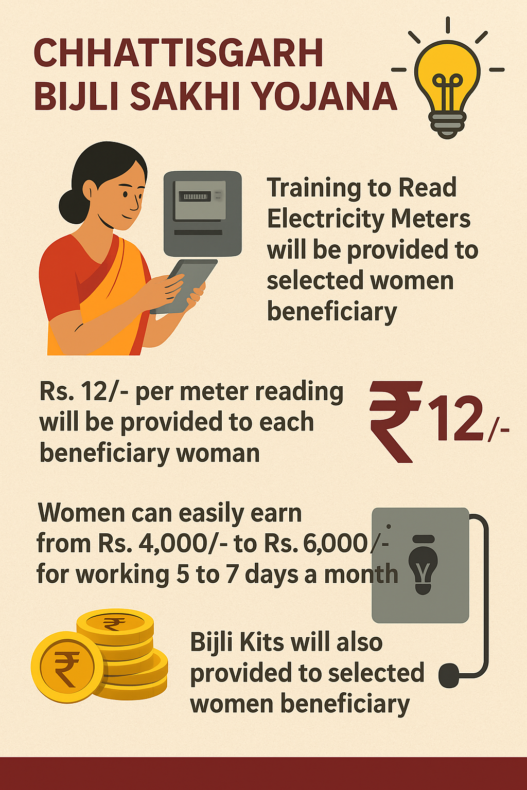 Chhattisgarh Government Lights the Way for Women – Bijli Sakhi Yojana With the launch of the Bijli Sakhi Yojana, the Chhattisgarh Government is creating new income avenues for women Self Help Group members. Each woman trained under this program beco