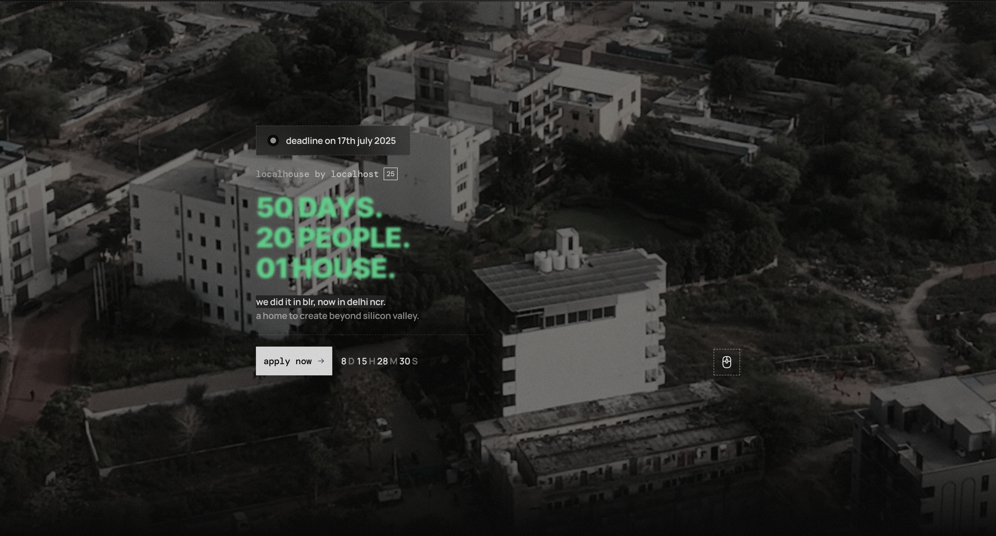 Remember Localhost viral hacker house of bangalore? Its now coming to Delhi. Indiaโs greatest hacker house - localhostIND is coming to delhi-ncr. 20 people, 50 days to build the next big thing. huge villa, with a garden, & everything taken care o