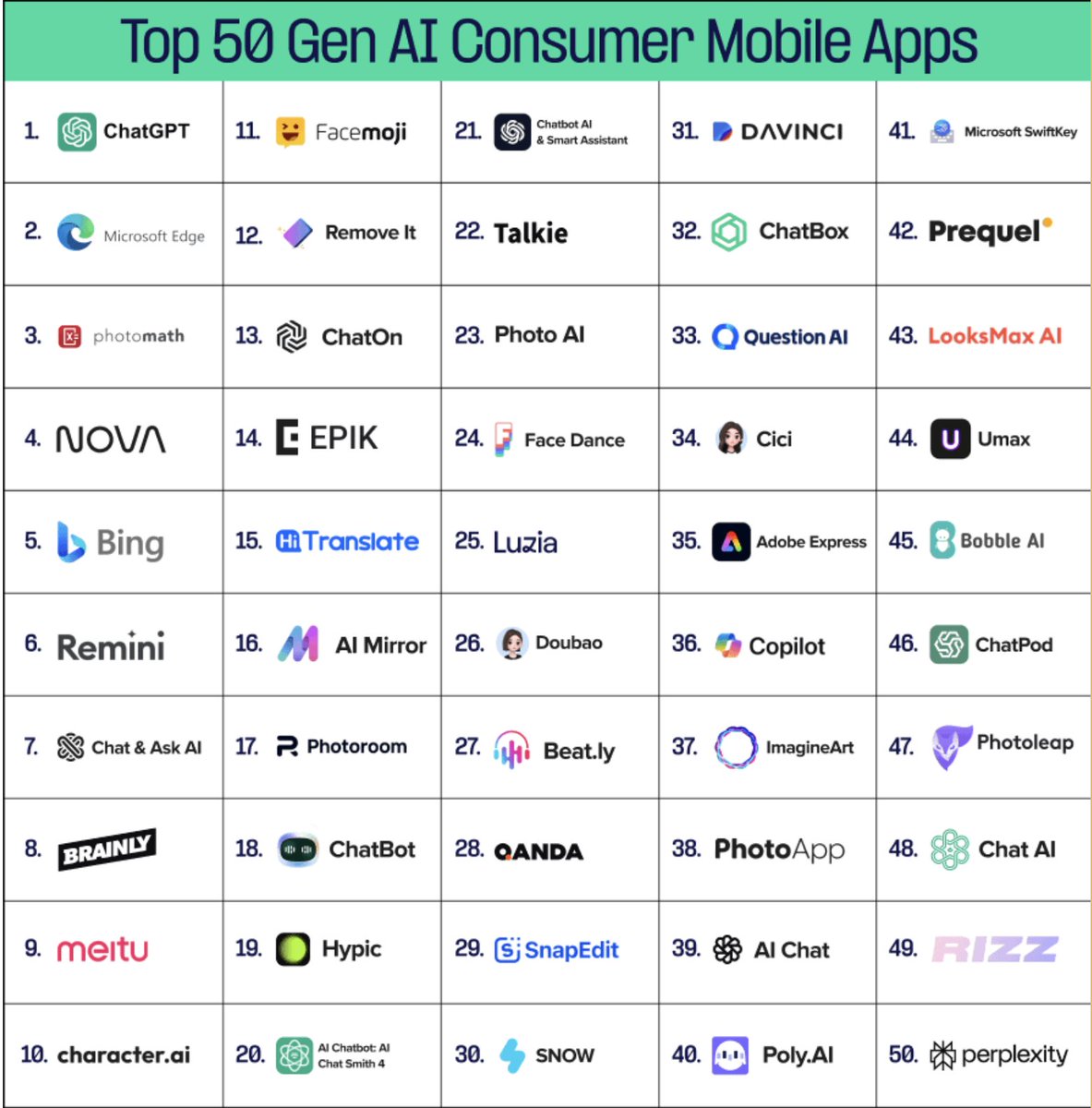 Imagine the PMF ChatGPT has that among the top 50 consumer ai apps - 5 more with similar logo and names are ranking top 50.