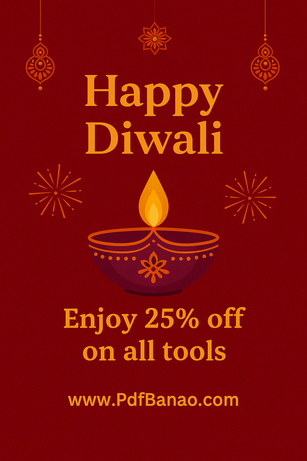 โจ๐ช Happy Diwali from PDFBanao.com ๐ชโจ "Roshni se jagmagaaye har kona, Har khushi bane apna hona, Tools ka ghar โ PDFBanao.com, Jo banaye kaam ko aasaan aur sona." ๐ Is Diwali, apne documents aur daily tasks ko banaiye super easy! Visit ๐ PDFBana