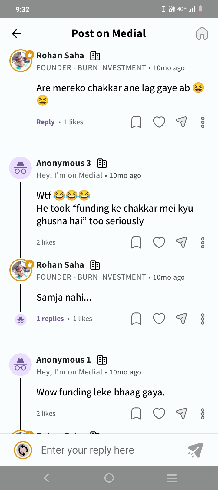 I joined the Medial recently....and I was going through all the posts...and suddenly I found this posts.... Spitting a shit about a founder is so easy, blaming a founder is so easy.... You do one thing....just join the journey of Founders from the