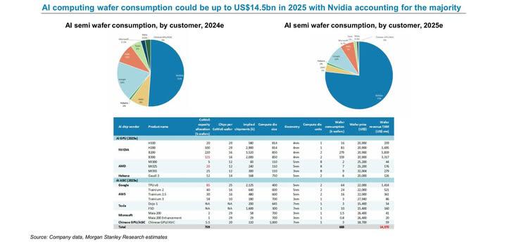 NVIDIA is expected to account for 77% of AI semiconductor wafer consumption in 2025, up from 51% in 2024.