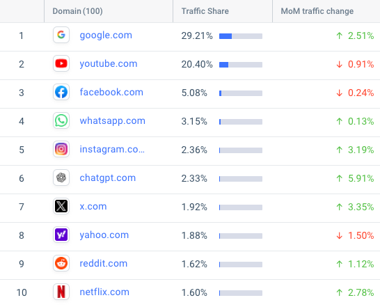 Will ChatGPT ever able to ru down goggle..? The top 10 websites in the world for January 2025: ChatGPT reaches its highest ranking yet.