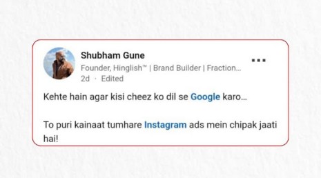 ab yaar UGC ad kahase banaoo kuch idea hai?? please don't say about those AI ad creators, humans ki jaroorat hai Fiverr pr dekha pr most of the outoff india wale hai and linkedin ki toh baat hi maat kro waha pr toh bs dead freelancers rehte hai ab tk