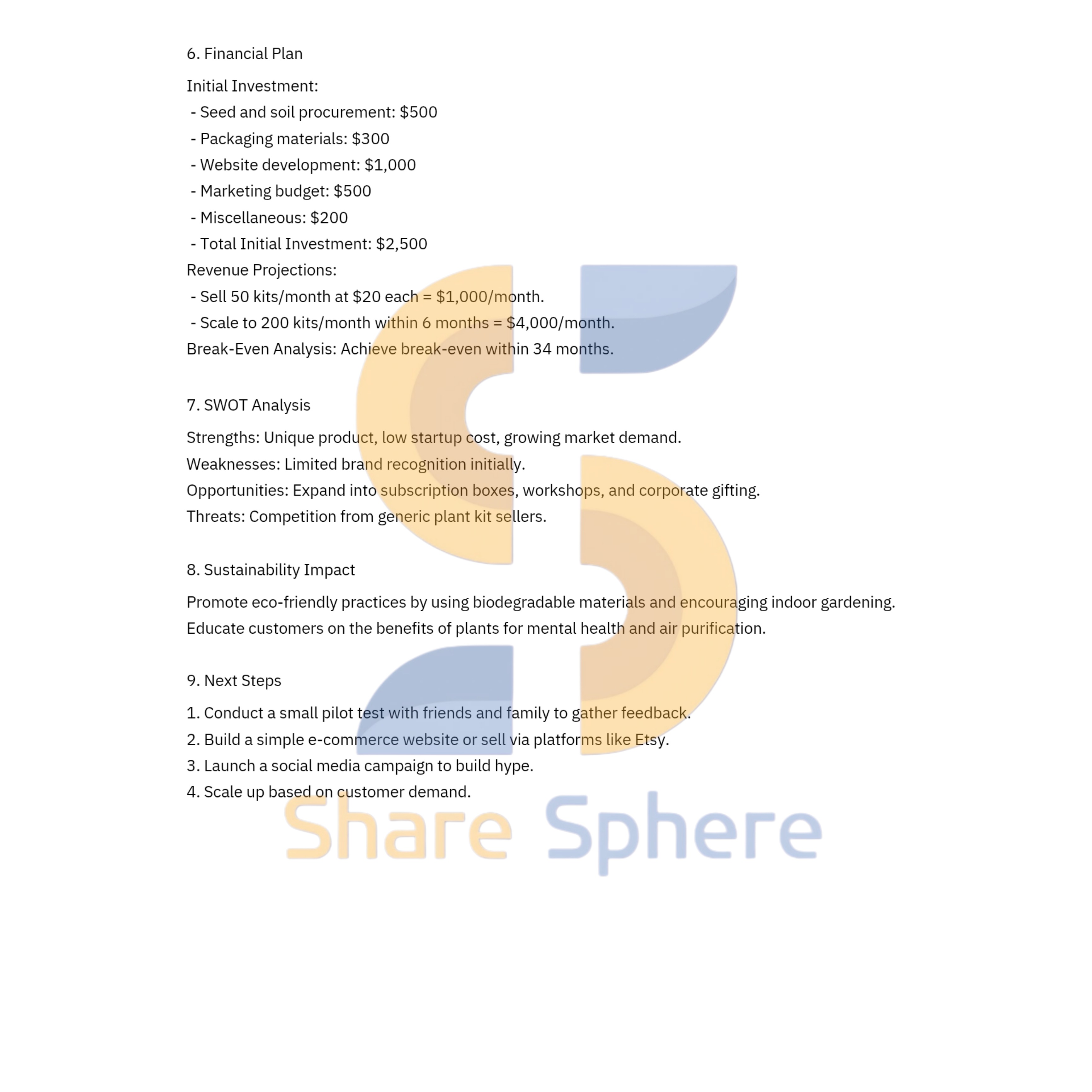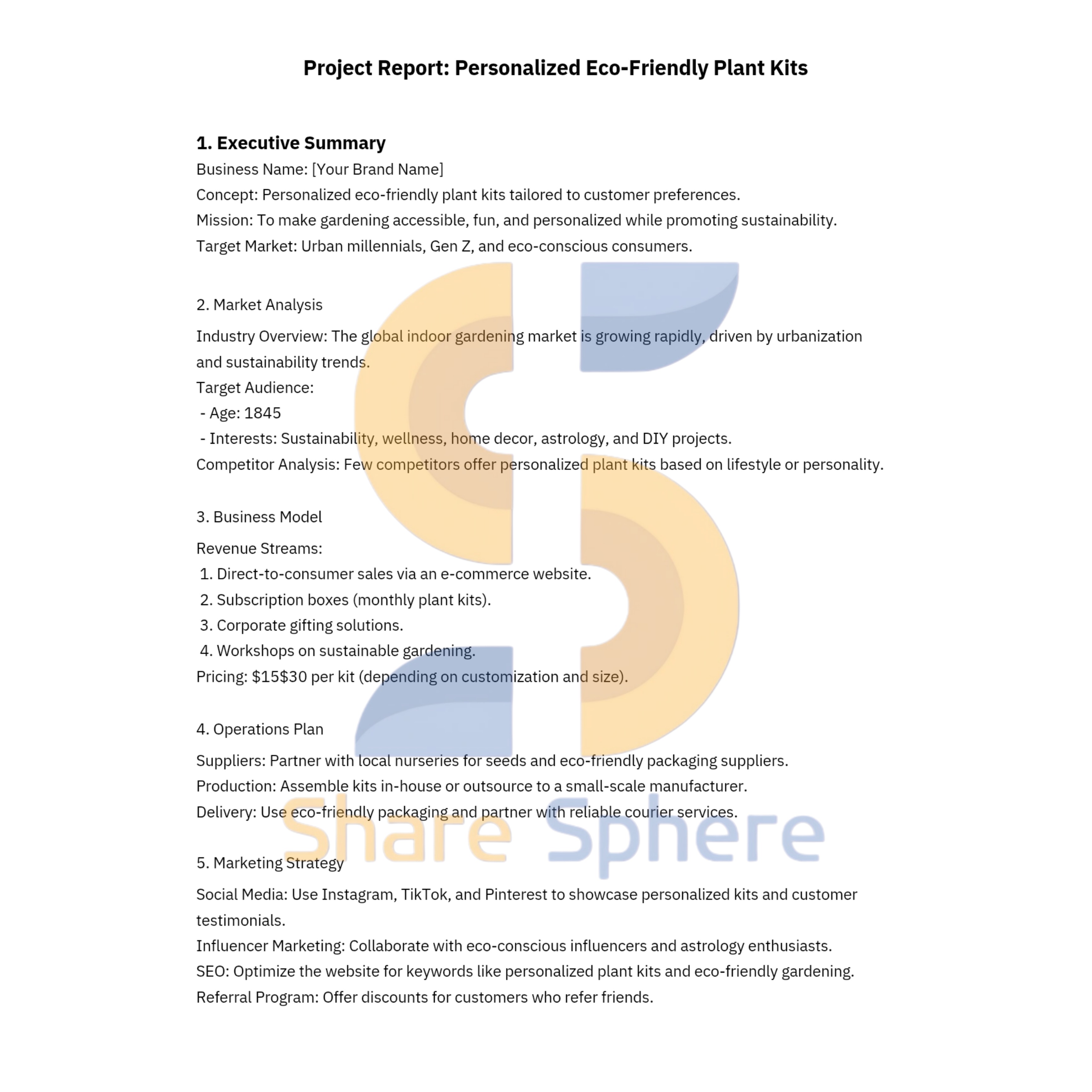 Hello my name is Aditya this is my startup idea Eco-Friendly Plant Kits. I need investment for my startup business if any one have interested to investment you can contact me this is my project report please check