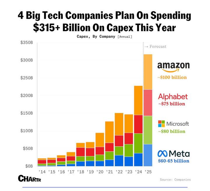 4 companies will spend over $315 billion on AI this year, that’s more than the market cap of Coca-Cola.