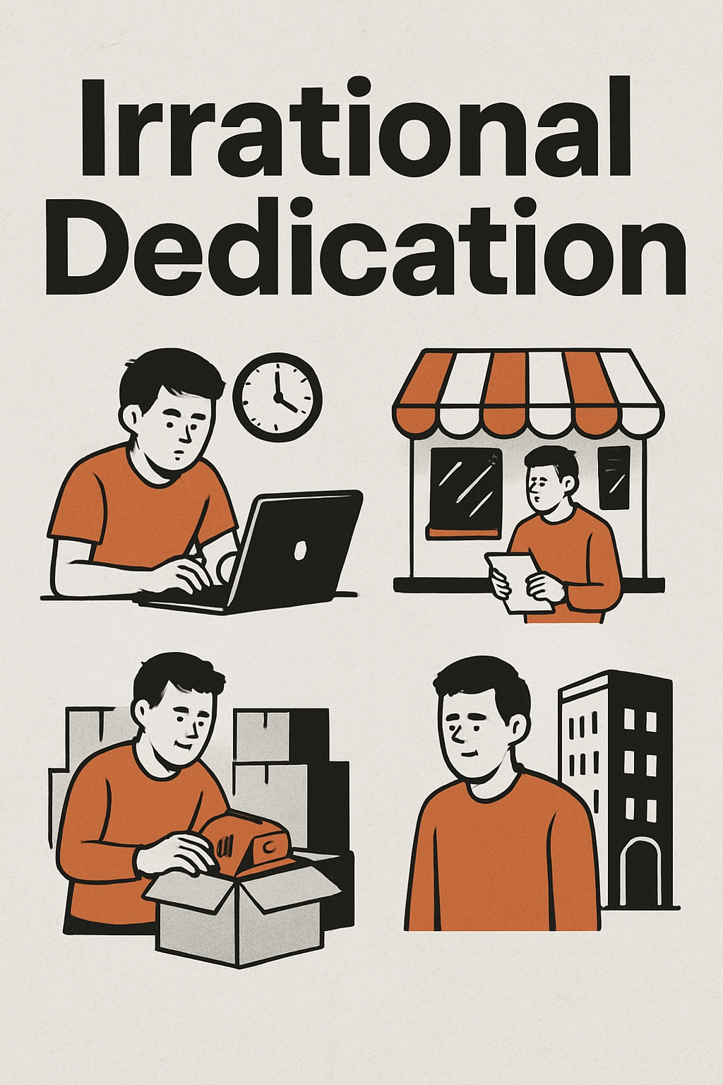 Irrational Dedication Nothing around you “just exists.” That café? Someone maxed out credit cards, begged for a lease, & worked 16hr days when only 3 people showed up. That fitness app? Built at 2AM after a day job, with eye strains, pushed through