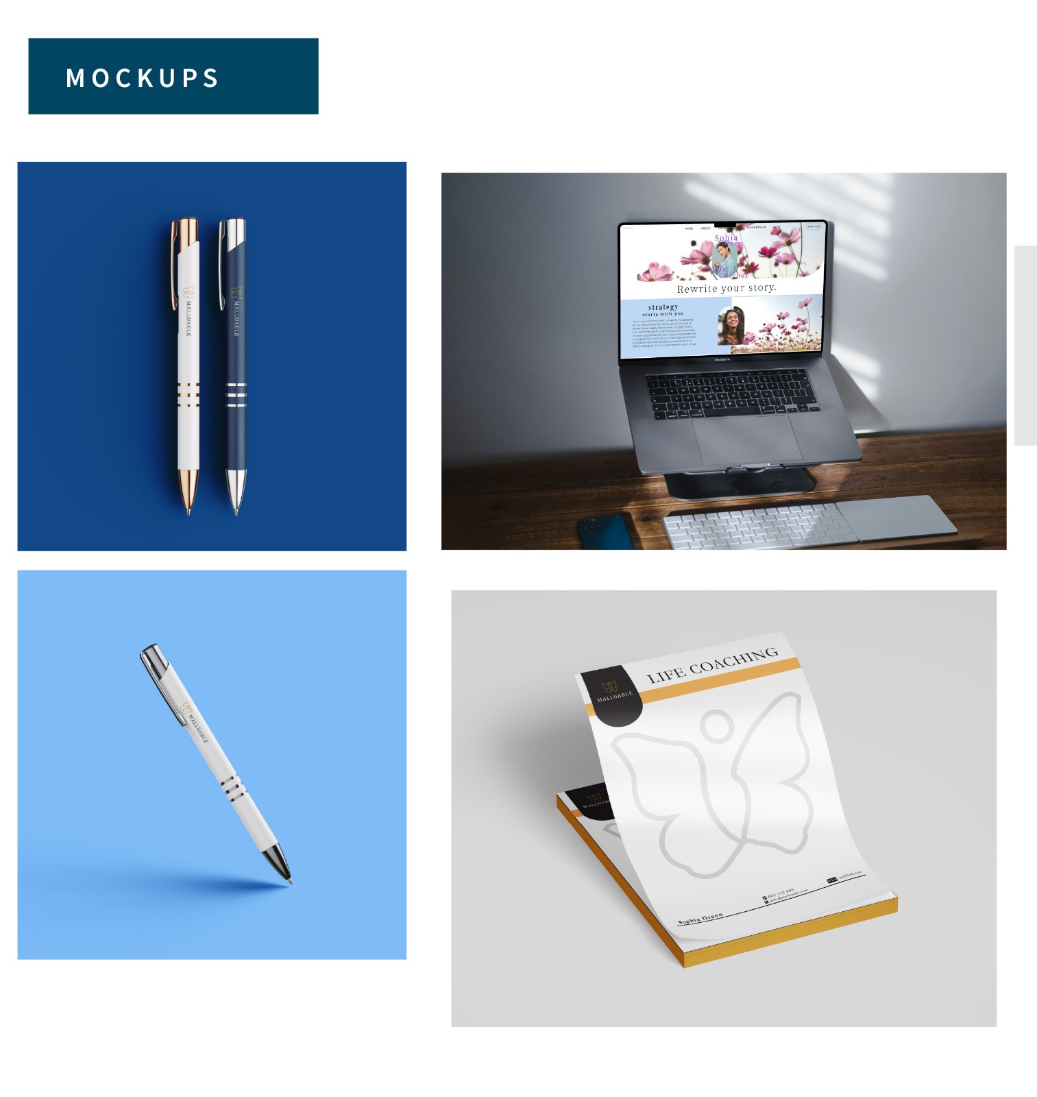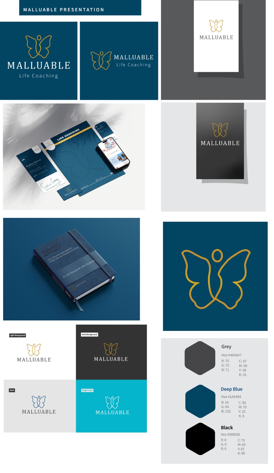 Just completed this brand identity for MALLUABLE – Life Coaching, and it feels like a big milestone for me. The concept is built around transformation — represented by a butterfly, which symbolizes growth, healing, and self-discovery. Every part of