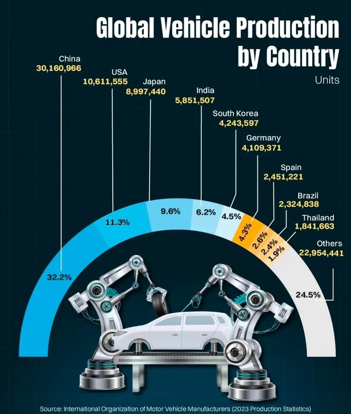 🌍 Semiconductor Manufacturing by Country (2025) 🚀 🇹🇼 Taiwan: Leads with 50% of global chip production; TSMC exports $150B (2022). 🇰🇷 South Korea: $130B exports; top in memory chips (Samsung, SK Hynix). 🇺🇸 USA: 12% manufacturing capacity; le