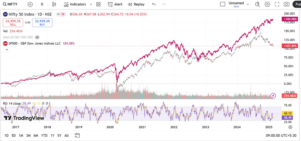 In terms of the S&P500 vs NIFTY50 in dollar terms, this could also be a reason for FIIs (Foreign Institutional Investors) selling. As I am posting this, the Indian market is down 0.50% today.
