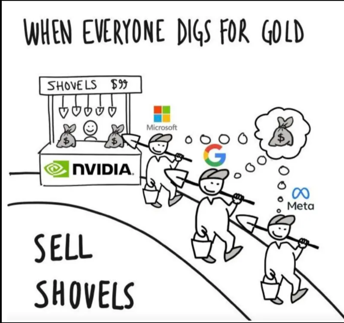 ๐ช๐ต๐ฒ๐ป ๐ฒ๐๐ฒ๐ฟ๐๐ผ๐ป๐ฒโ๐ ๐ฐ๐ต๐ฎ๐๐ถ๐ป๐ด ๐๐ ๐ด๐ผ๐น๐ฑ, ๐ก๐ฉ๐๐๐๐ ๐๐ผ๐น๐ฑ ๐๐ต๐ฒ ๐๐ต๐ผ๐๐ฒ๐น๐. Thatโs the smartest move in the whole game. While Microsoft, Google, and Meta are spending billions to build AI models... NVIDIA quietly became