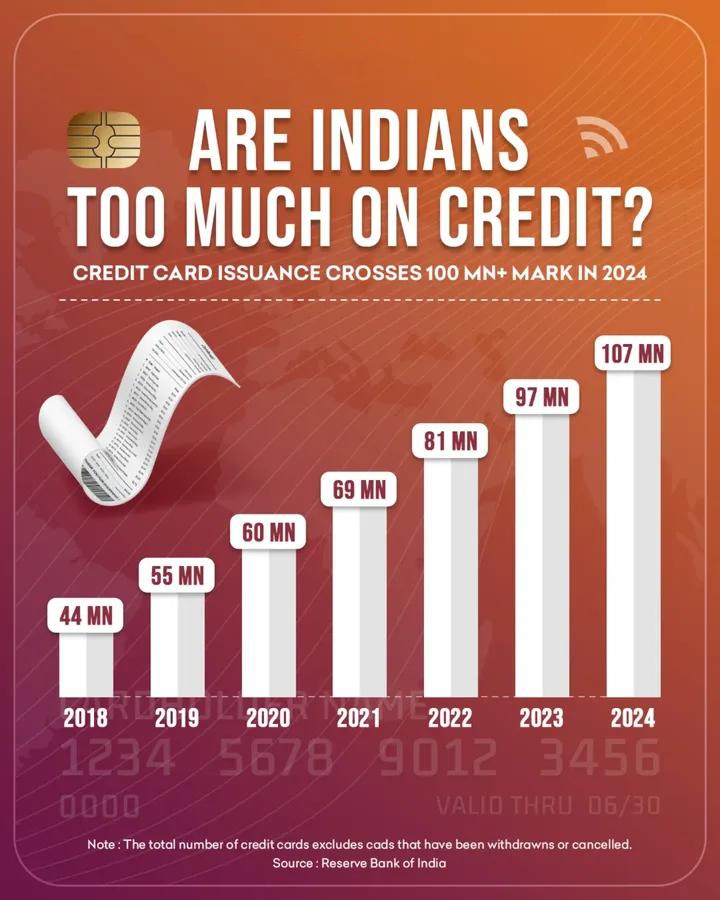 📊 Are Indians too dependent on credit? India has crossed the 100 million+ mark for credit card issuance in 2024! This surge highlights a significant shift in spending habits and financial trends.