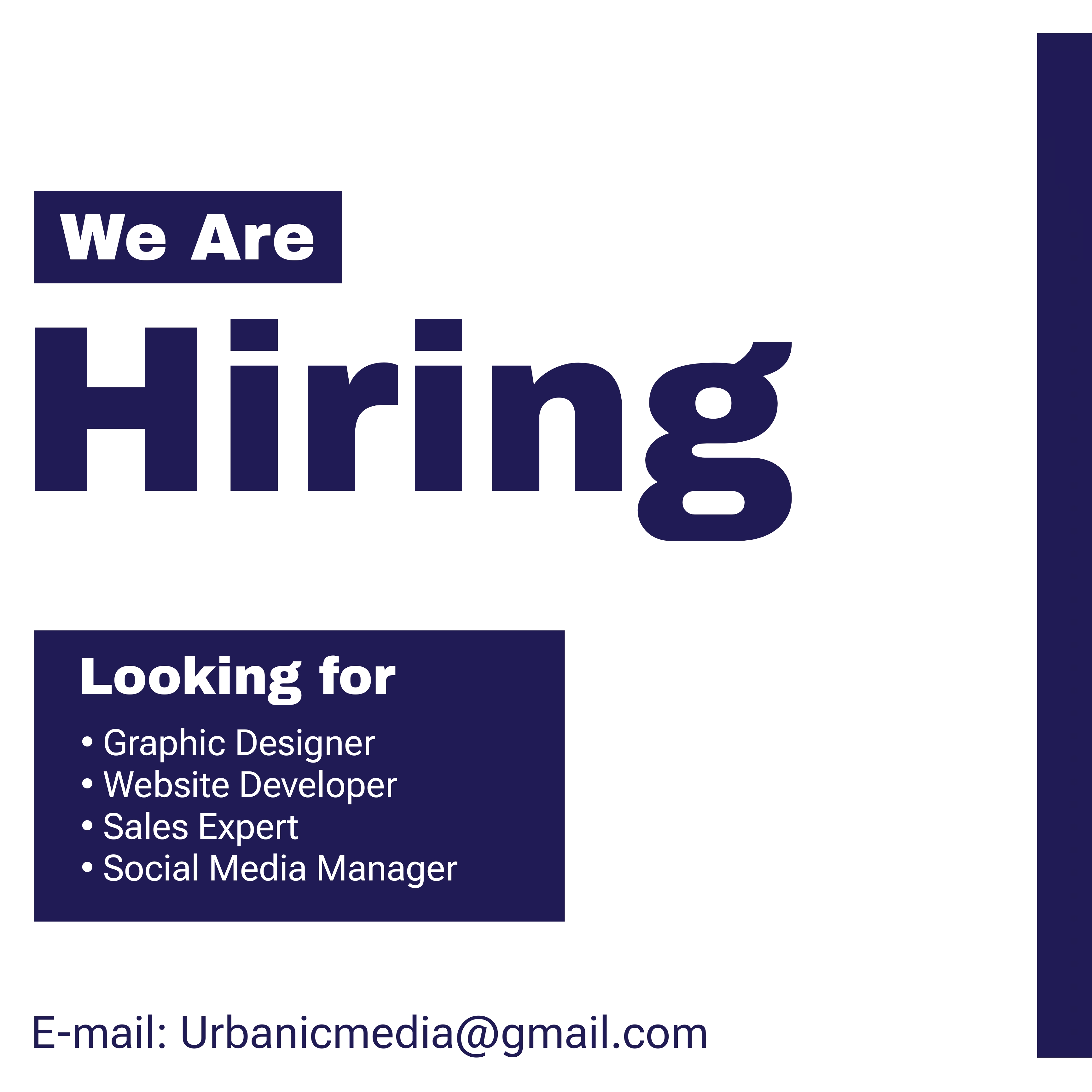 Looking for a good staff for my company Urbanic Media. Interested candidates can apply here for the following posts. https://tinyurl.com/2s98nmy5