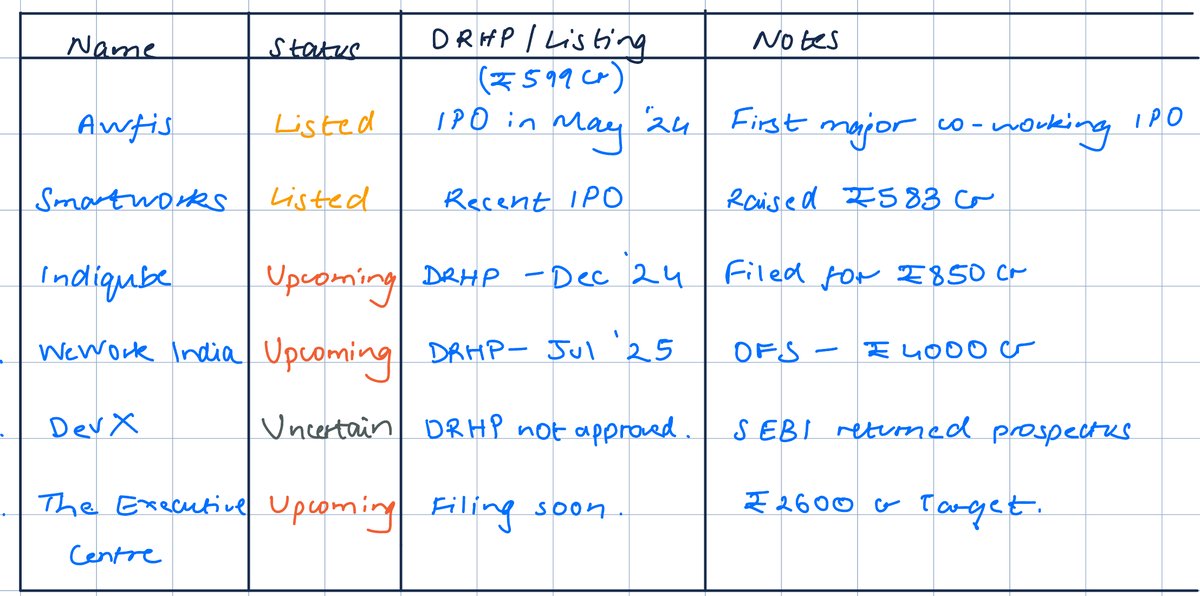 There’s been a steady wave of co-working IPOs over the past 12–15 months. (Startups like Awfis, Smartworks, WeWork India, and IndiQube have either listed or filed DRHPs) Many are still early-stage by public market standards (Smartworks, IndiQube ar
