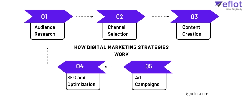 How Digital Marketing Strategies Work | Eflot Digital marketing strategies combine SEO, social media, content, and analytics to target the right audience, drive traffic, and boost conversions. They align business goals with online efforts for measu