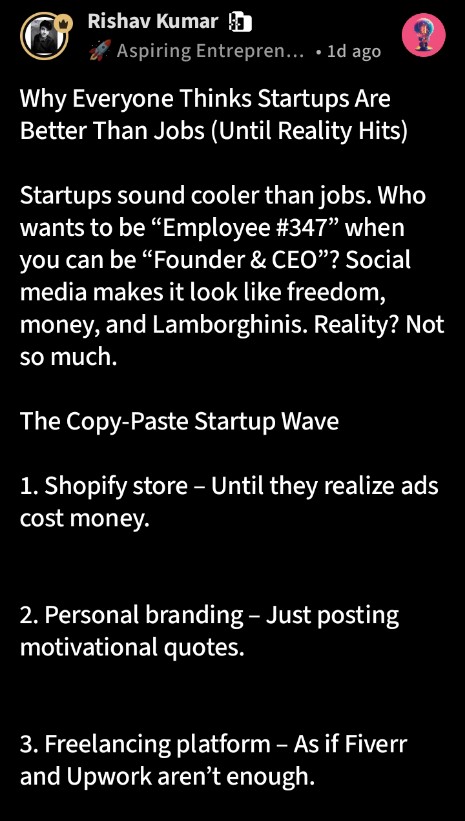 I've heard working in startups is better than working in a corporate when you're starting full time. I believe in this bcs even I feel like startups can help with more learning in the early stages of one's career. Any thoughts/ suggestions/ views fro